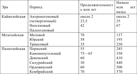Необходимым при изучении географии является подразделение истории планеты на несколько этапов. Геологическое летоисчисление (геохронология) – это учение о хронологической последовательности формирования горных пород, составляющих земную кору. В основе определения возраста тех или иных пород и дальнейшего их отнесения к определенному временному этапу лежит признак последовательности напластований (каждый вышележащий пласт (если последовательность залегания горных пород не нарушена) моложе нижележащего (в основном это относится к осадочным породам). Последовательность отрезков времени, в течение которых формировались те или иные толщи горных пород, отражает геохронологическая шкала, которая включает следующие части (от наиболее к наименее продолжительной):