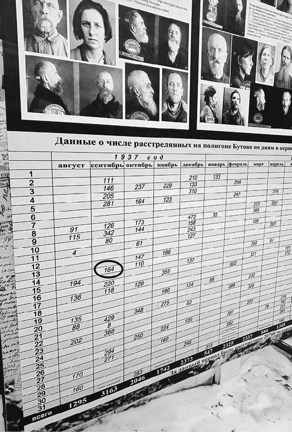 Сегодня жуткое зрелище представляют длинные ряды общих могил невинно замученных и расстрелянных на Бутовском полигоне. На фотографиях истощенные, отчаявшиеся, истерзанные, избитые люди. Невозможно без слез смотреть в их наполненные мучениями глаза, в которых застыли бессилие и потерянные надежды.
