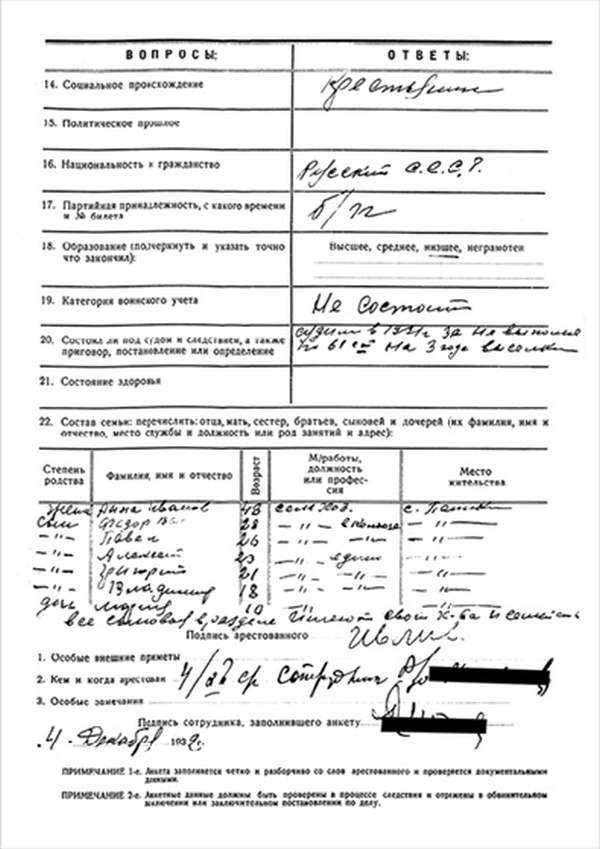 Примечание 1-е. Анкета заполняется четко и разборчиво со слов арестованного и проверяется документальными данными.