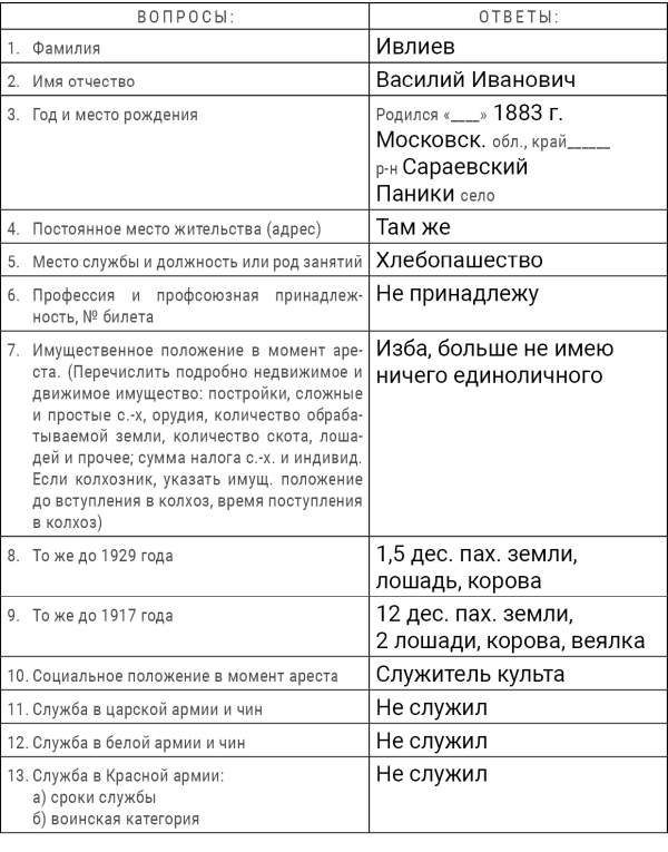 Я, Врид. Нач. Сараевского Р/О УНКВД МО Сержант Государственной Безопасности… рассмотрев 11 августа 1937 г. следственное дело по обвинению бывшего кулака-священника ИВЛИЕВА Василия Ивановича, уроженца и жителя села Паники, Сараевского района, Московской области, единоличника, установил следующее: