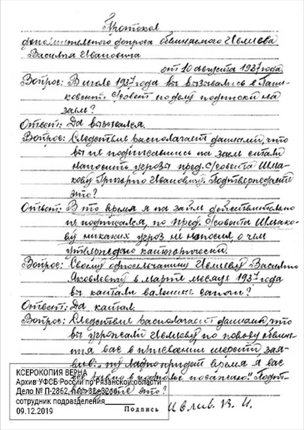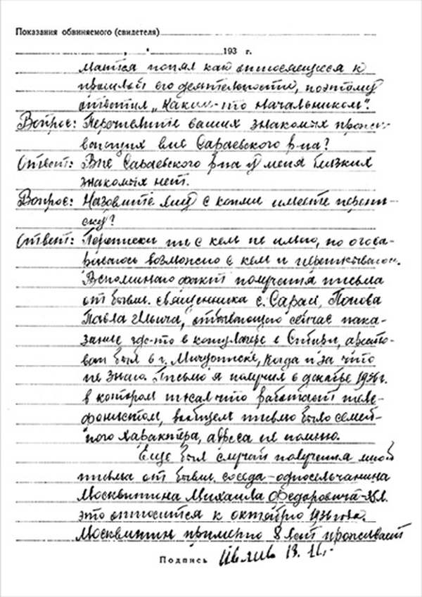 1932 г. декабря 6 дня, я сотрудник Сараевского ПП ОГПУ МО… допросил в качестве обвиняемого гр-на Ивлиева В.И., который показал: