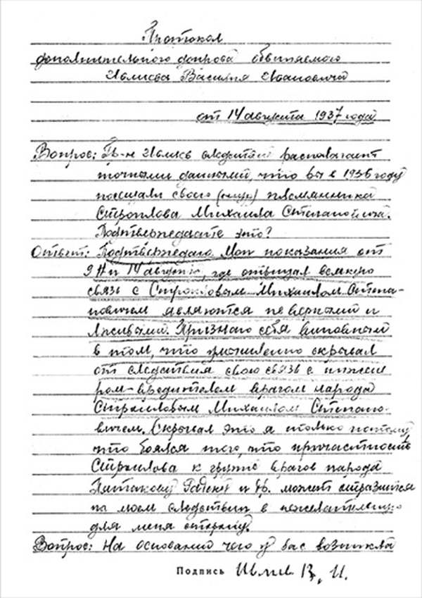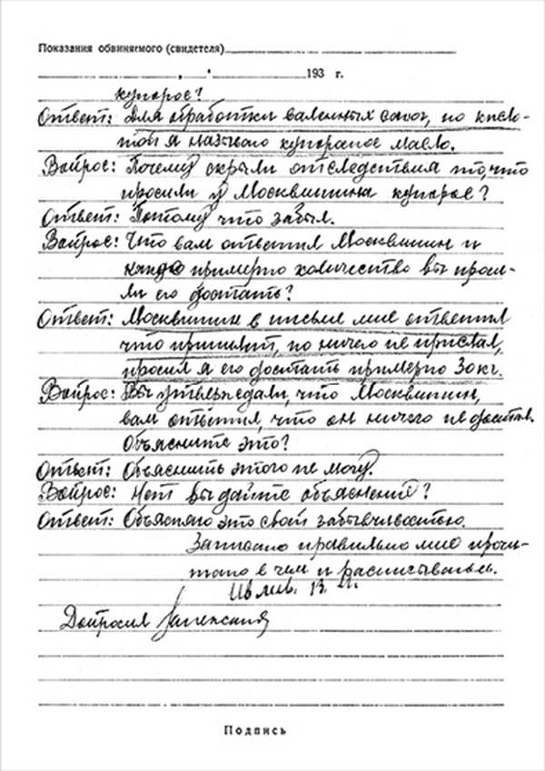 *) Каждая страница протокола должна заканчиваться словами подписью допрашиваемого, а последняя и допрашивающего