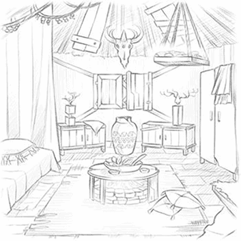 В этот момент его взгляд зацепился за висящий на стене череп. Трудно было понять, как именно выглядело это рогатое существо при жизни, но сам факт наличия его останков в доме говорил о том, что когда-то такие создания водились здесь. Интересно только, куда делись. Про охоту и животноводство Тиара не говорила, да и выглядел этот череп старым и побитым, истёршимся. Очевидно, что он был здесь обычным украшением, пусть и весьма своеобразным, и найденным, скорее всего, где-то в земле, а не охотничьим трофеем хозяина дома.