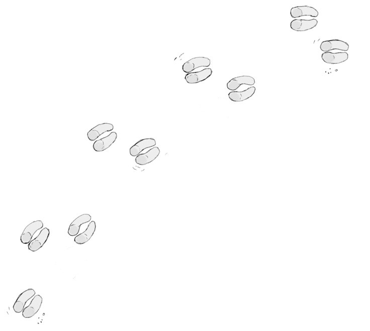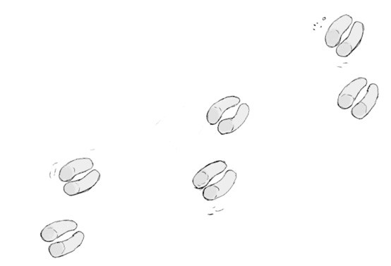 Куда девушка, которая приезжала вчера, могла увести Дафну? Чубчик вытянул шею. Во все стороны простирались только леса и поля. Поблизости не было видно ни дома, ни усадьбы, где мог бы располагаться тот самый приют для животных. Чубчик загрустил и повесил голову. И тут – о чудо! – он вдруг заметил, что трава в некоторых местах примята. Не поднимая носа, чёрный лама пошёл по следу, который вывел его на лесную тропинку. Минувшей ночью прошёл дождь, земля ещё не до конца просохла, и в одной из лужиц Чубчик разглядел круглые отпечатки ног с двумя пальцами спереди: это, вне всяких сомнений, были следы Дафны! Ведь у дромедаров, как и у лам, вместо настоящих копыт на ногах имелось два больших пальца, на подошве покрытых мозолистой кожей. Чубчик даже подпрыгнул от радости. Он всё-таки превосходный детектив – не зря ему доверили должность директора в «Банде лам»! Не поднимая носа от земли, он перешёл на лёгкую рысь. Однако цепочка следов внезапно оборвалась. Чубчик в растерянности остановился у края покрытого свежескошенной травой луга. Что же теперь делать? Как искать Дафну?