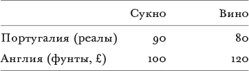 Нетрудно увидеть, что торговля выгодна купцам обеих стран (в дальнейших рассуждениях для простоты опустим транспортные издержки). Возьмем случай английского купца. Он может купить заданное количество сукна за 100 фунтов, отправить его в Португалию и продать за 90 реалов. На эту сумму денег он может купить вина у португальского винодела и получить всего 90/80 = 9/8 бочки вина, если одна бочка стоит 80 реалов. Это количество вина он затем отправит в Англию и продаст за 9/8 ∙ 120 = 135£. Так он получит прибыль в размере 135–100 = 35£, или норму прибыли в размере 35 %, на инвестиции в размере 100£ за то время, которое ушло, чтобы экспортировать сукно и импортировать вино. (Стоит упомянуть, что английский купец может использовать один и тот же корабль, чтобы везти товары в Англию и из Англии.) Те же рассуждения можно применить к португальскому купцу.