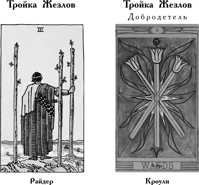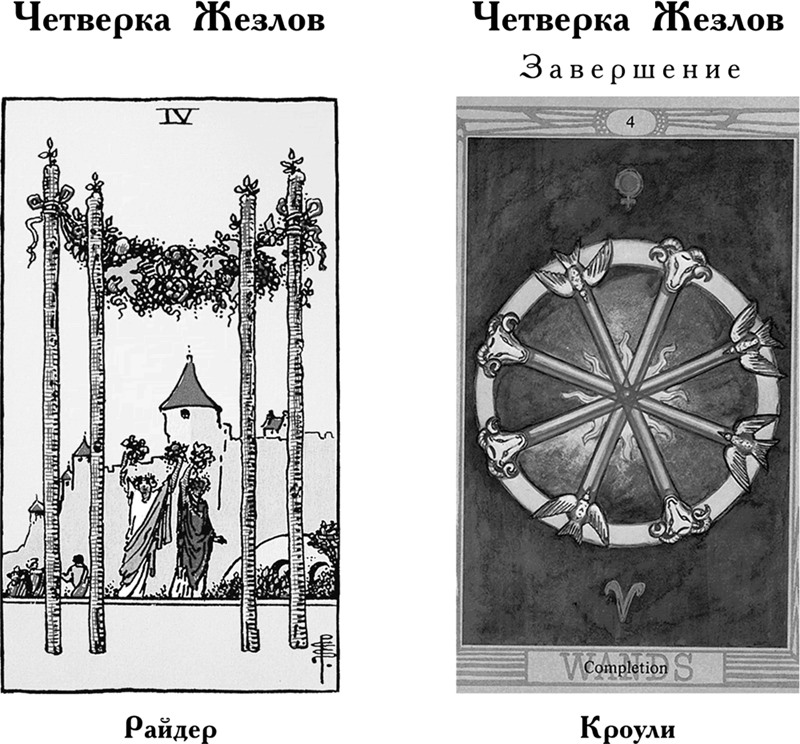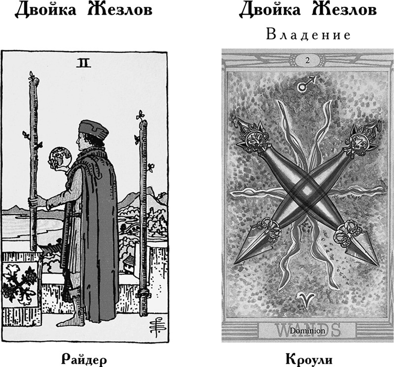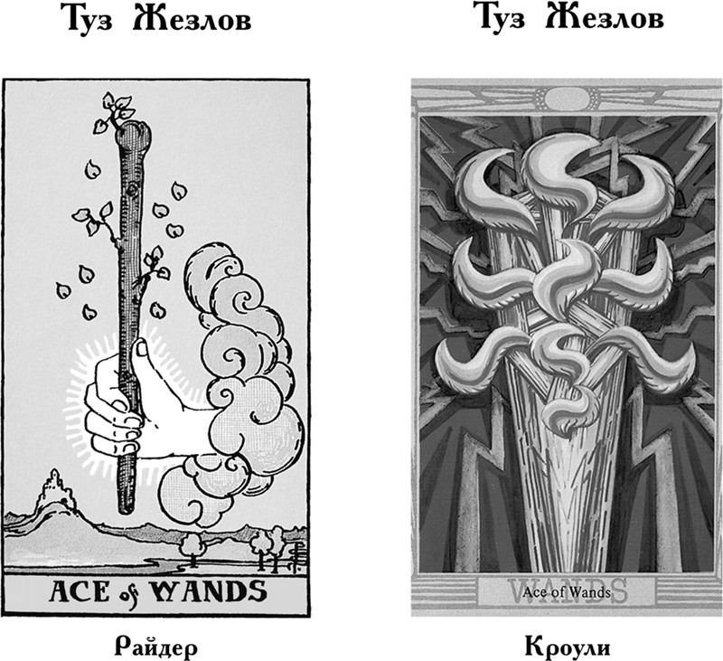 Особое значение в Таро Кроули: Здесь оформление карты совершенно иное. Она означает начало новой эпохи. Таким образом она указывает на то, что нечто новое, важное, существенное и, возможно, удивительное пришло в этот мир и будет иметь огромное значение в будущем. Однако сейчас оно еще слишком слабо, чтобы выжить самостоятельно, поэтому нуждается в пристальном внимании и помощи со стороны.
