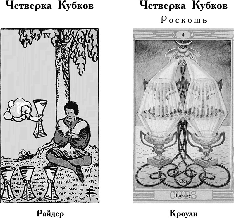 Карта также говорит о том, что вы можете рассчитывать на поддержку друзей. Черная полоса вскоре закончится, это произойдет, как только вы преодолеете боль. В колоде Кроули акцент смещен в сторону неутешительных аспектов. Здесь скорее говорится об отчаянии, которое испытывает человек, понимая, что он разбил нечто прекрасное собственными руками. Однако со временем страдания и боль трансформируются и становятся благоприятной почвой для позитивного развития чего-то нового.