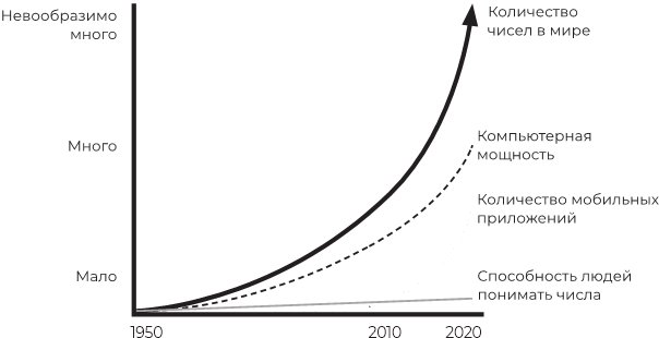 Однако эволюция человечества едва ли рассчитана на такое количество и такие масштабы чисел, которые захлестнули нас сейчас. По некоторым оценкам, в настоящее время человечество ежедневно генерирует больше чисел, чем оно породило за более чем пять тысяч лет: со времени появления первой глиняной таблички в Уруке до 2010 года.