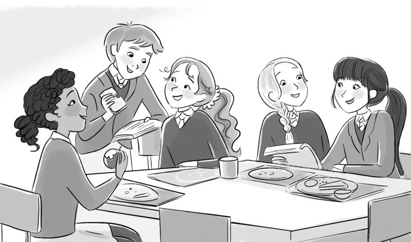 – Ты чего, Хлоя? Совсем шуток не понимаешь? – Сэм закатил глаза. – Теперь придётся упрашивать их, чтобы вернули мой обед. Эй! Он уже ест мой пудинг! – И под хихиканье Хлои и всех остальных он бросился спасать свой поднос.