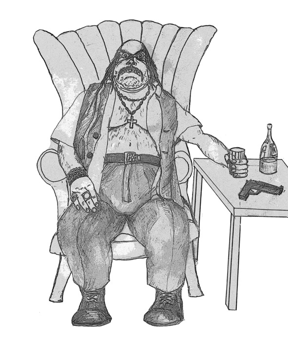 Цыган сидел посреди двора на каком-то подобии трона. Довольно щурившись, он потягивал коньяк из гранёного стакана. Весь двор был завален машинами – Рэнж-роверы, Мерседесы, Крузаки. Чего тут только не было. Трёхэтажный дом пестрил безвкусным великолепием. На вид он являлся чем-то средним между особняком, православным храмом и мечетью. У Витьки аж глаза заболели от блеска золота, которым был покрыт пузатый купол на крыше. Сам Цыган выглядел неважно. Во многом благодаря обрюзгшей роже, огромному животу и выпученным глазам.