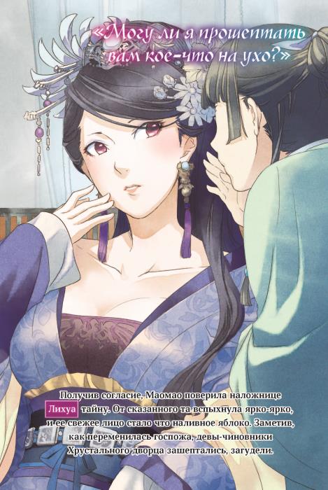 Служанки говорили о двух любимых наложницах императора, госпоже Лихуа и госпоже Гёкуё. А по шесть и по три месяца, как догадывалась Маомао, исполнилось их детям.