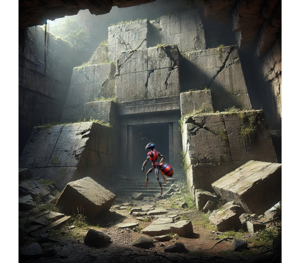 Однако приближение к цели не развеяло подозрений. Вблизи вид оказался ещё хуже чем ожидалось. Купол муравейника покосился и сполз на бок. Сверху, беловатой шапкой на нем выступила плесень. Стены потеряли ровные очертания и то тут, то там вздувались буграми. Подъемные галереи были разрушены, а колоны и украшения разбиты и валяясь внизу кучками мусора. Более того, вокруг не было видно ни рабочих и ни охраны, на отсутствие которой кстати, обратили внимание ещё на дальних подступах. Наконец подойдя почти вплотную разведчики заметили всё же несколько мурашей на стенах и нескольких внизу, которые праздно шатались там с каким то отрешённым видом. По пришедшей в совершенную негодность транспортной рампе, через которую обычно муравейник снабжается всем необходимым, один единственный строитель-транспортник тащил хвоину. Но и тот в конце концов бросил свою ношу и присоединился к остальным бездельникам.