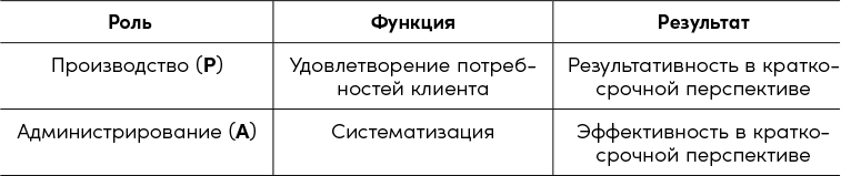 Если вы производите результаты, ваша организация будет результативной. Если вы к тому же администрируете, то она будет эффективной. Успешное исполнение и производственной (P), и административной (A) роли сделает организацию в краткосрочной перспективе результативной, эффективной и прибыльной (возможно, это важно, если прибыль служит для вас критерием успеха).