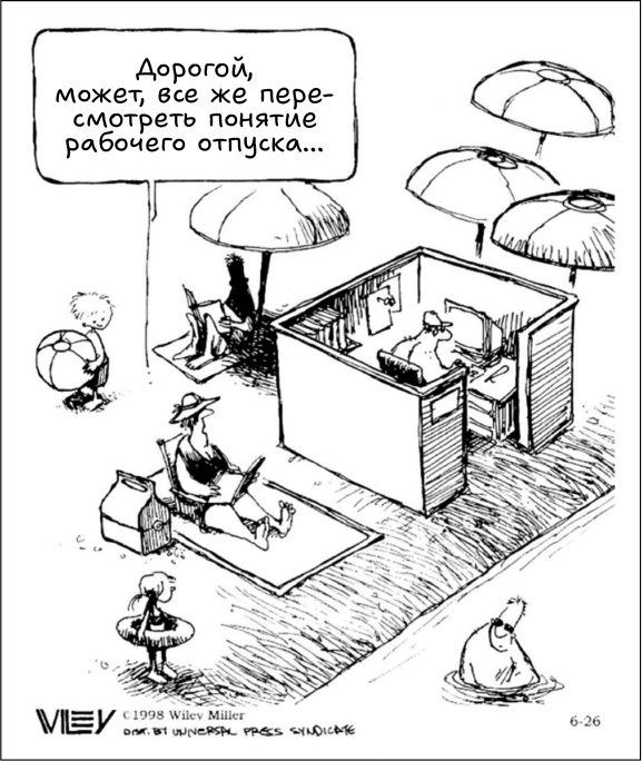 Для трудоголика отпуск – сущее наказание. Словно алкоголику предложили провести две недели на острове, где действует сухой закон. Жуткая перспектива. Поэтому, собираясь в отпуск, трудоголик набивает чемодан рабочими материалами, подобно тому как алкоголик припрятывает бутылочку.