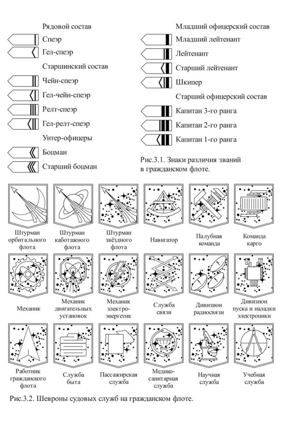 Любая профессиональная деятельность, связанная с организацией множества людей в целях обеспечения порядка и эффективности приходит к иерархической системе. Иерархия нормативно описывается уставами, которые определяют права и обязанности каждого участника деятельности и их взаимоотношения. Космические перевозки требуют чёткой и слаженной работы больших масс людей. Иногда скорость исполнения приказаний и верность дисциплине определяют выживание экипажа на судне или рабочих в порту. Поэтому гражданский флот имеет ясную и строгую иерархическую структуру.