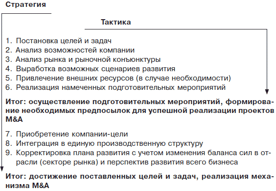 Алгоритм действий компаний, направленный на развитие посредством слияний и поглощений, можно представить в виде следующей схемы (рис. 8).