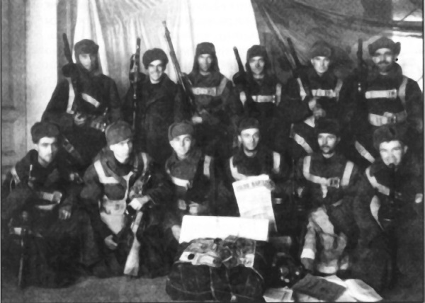 Снимок этот иллюстрирует совсем не то, что ему приписали. Это не результат фотографирования десантной группы перед вылетом, на своей базе, как сказано в статье. Снимали-то нас через две недели после ареста, как раз перед католическим праздником Рождества Христова. Временно в казённую солдатскую форму нарядили всех «шпионов», потому как многие из нас были уже ограблены и переодеты в сменку, в негодное старье…»[131]131