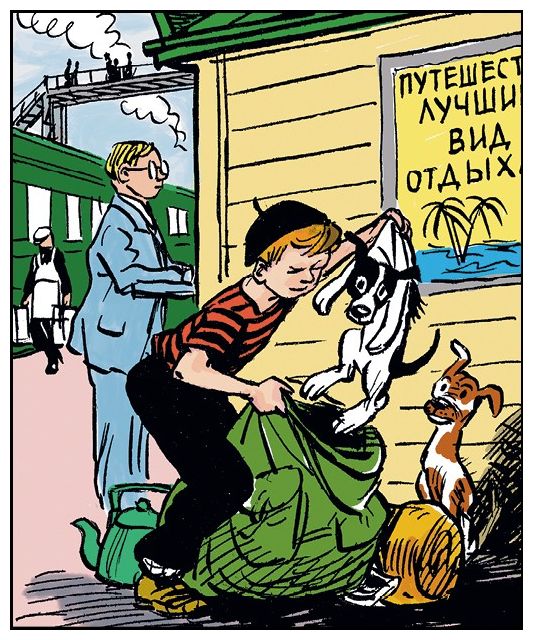 – Здравствуйте! – поздоровался с Петей проводник скорого поезда Москва – Архангельск. – С билетом всё у вас в полном порядке. Но вот собачки-то – без намордников! Так нельзя в поезде ехать… Нужны намордники.