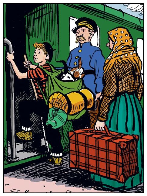 – Некогда мне намордники вам покупать… Поезд того и гляди отправится! Полезайте-ка вы, друзья мои, в рюкзак!