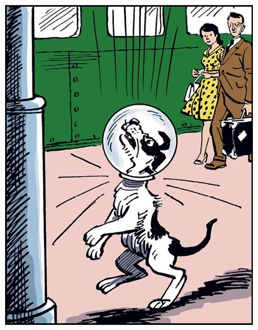 – Ух, какой ты умница! – сказал продавец. – А знаешь, что ты очень похож на ту самую собаку Лайку, которую отправили в космос? Как раз в этой газете есть её фотография. Вон, смотри! – кивнул он в сторону стоящего рядом дядьки.