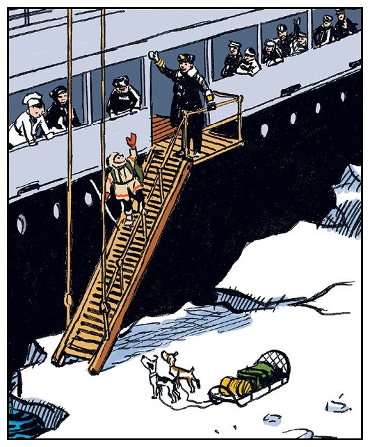 Плавание ледокола продолжалось. Через несколько дней Петя высадился на дрейфующую льдину. Дальше предстояло на собачьей упряжке отправиться прямо к Северному полюсу.