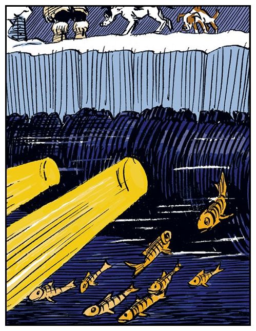 «Что же случилось? Неужели льдина тает на солнце? Мы окажемся в ледяной воде!» – подумал Петя. Он не мог себе представить, что происходило подо льдом.