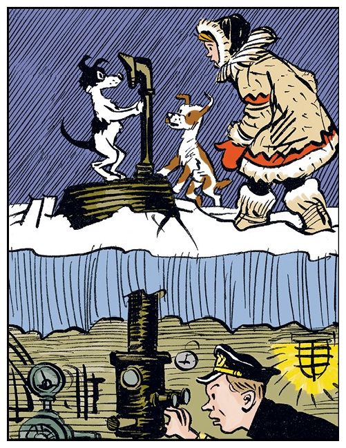 Когда «Северянка» проплывала над дном океана над самым Северным полюсом, Петя воскликнул: «Ура! Мик, Мук, я вас поздравляю! Мы осуществили нашу мечту. Мы – на Северном полюсе!»