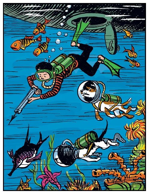 – Чтобы проводить под водой эксперименты. Как проводили опыты с Лайкой в космосе. Так что бери с собой на подводную охоту твоих четвероногих друзей. Вы можете поплавать рядом с лодкой. Только не потеряйтесь!