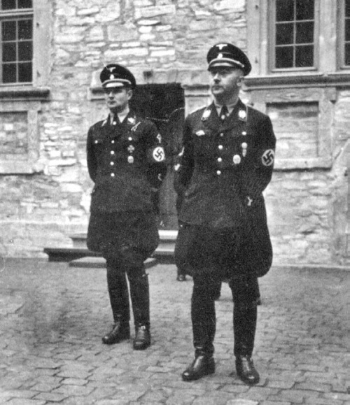 Генрих Гиммлер (справа), один из главных политических и военных деятелей нацистской Германии, на очередном собрании в замке Вевельсбур