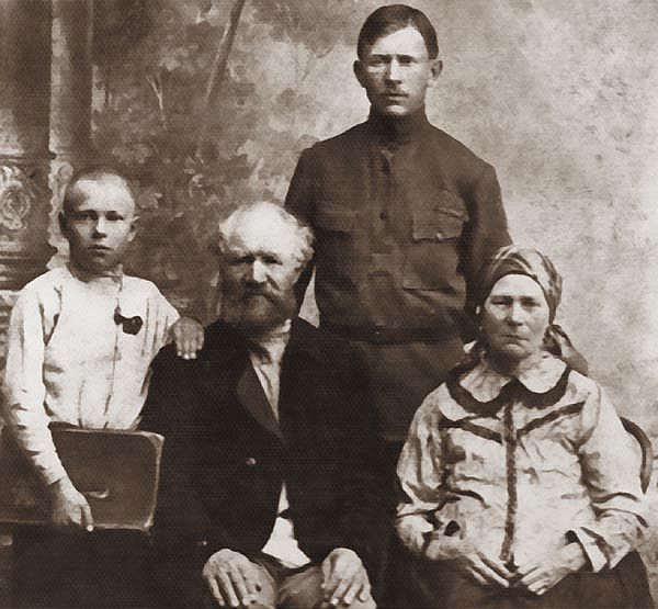 Д. Ф. Устинов (слева) с отцом, матерью и братом 1918. [Из открытых источников]