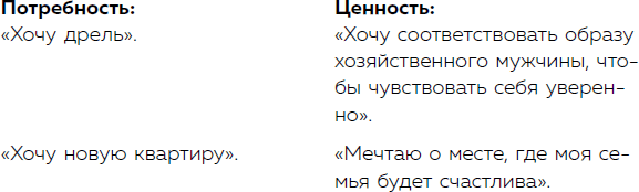 В этой главе разберем психотрюки, которые помогут понять истинные ценности покупателя. Но для начала разберемся, чем они отличаются от его потребностей.