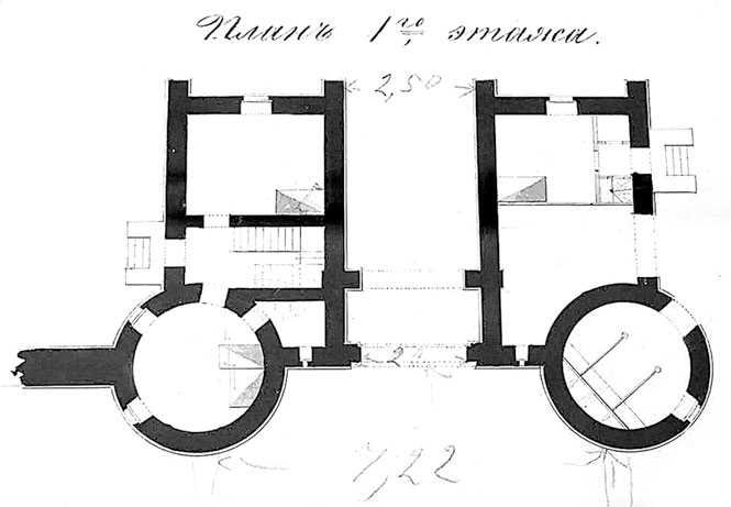 РГИА. Ф. 487. Оп. 5. Д. 1881. Л. 5. По исправлению террасы у башни близ Нового дворца. 1835–1836.