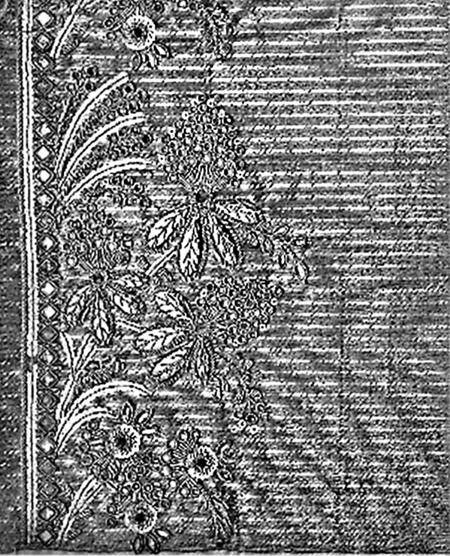 Образец вышивки для камзола с изображением веток с цветами.