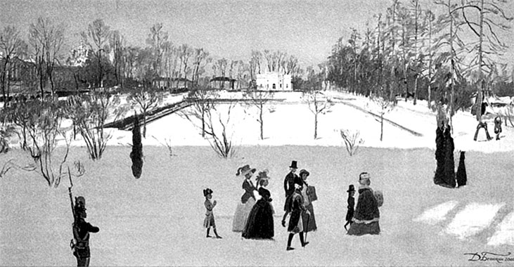 А. Белюкин. Прогулка императрицы Екатерины II с великими князьями Александром и Константином в Царском Селе