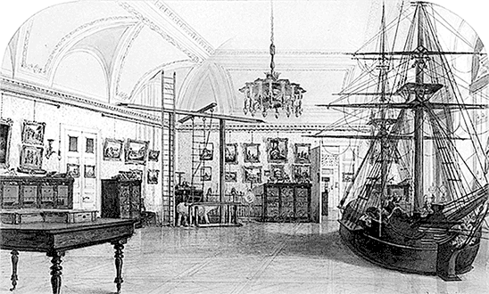 После пожара 1837 г., когда семья Николая I переехала во вновь отстроенный Зимний дворец, в нем появилась совершенно уникальная игрушка – учебная яхта. Игровая комната «для мальчиков», где установили яхту, получила название Корабельной. Отвечал за строительство учебной яхты подполковник М. Н. Гринвальд[171]171