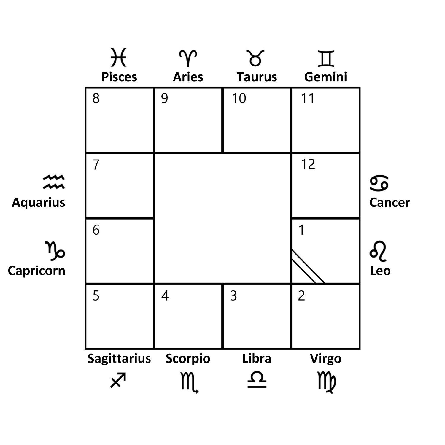 The ascendant is the point on the ecliptic that rises at the moment of birth. The Sun passes through one sign of the Zodiac in a month, while the Moon does so in about two and a half days. The ascendant takes from one to three hours to change (depending on the sign). There are two types of natal charts (North Indian and South Indian). We will use the South Indian chart.