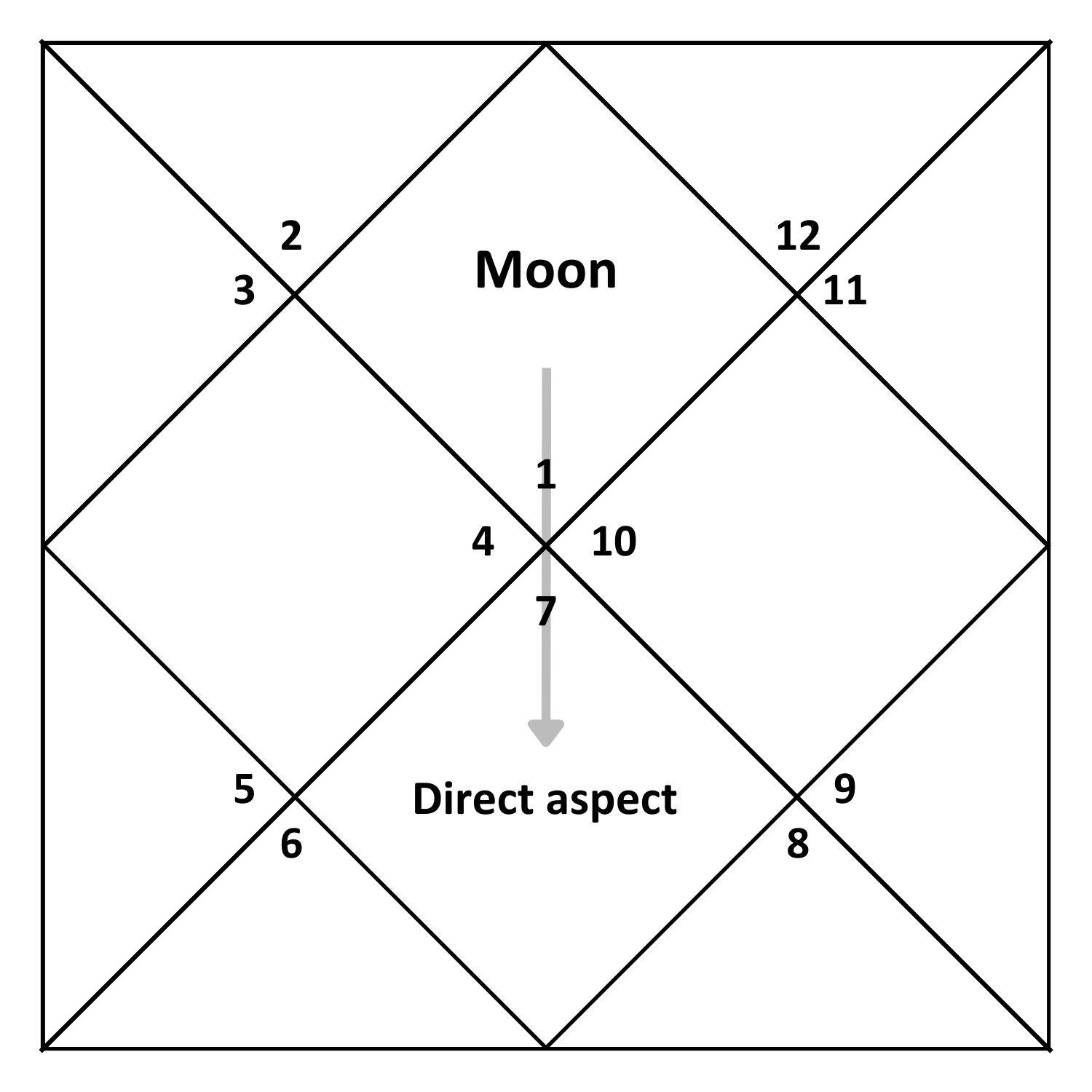 When transiting the 7th house (marriage or business partner), the Moon makes a direct aspect to the 1st house (head, health, appearance, character, inclinations).
