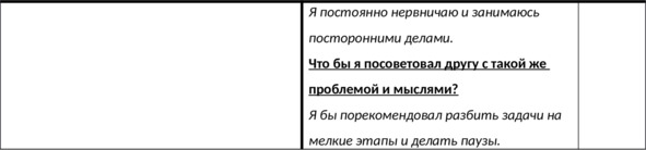 – Э – поведенческий эксперимент (с описанием возможных трудностей и стратегий их преодоления);