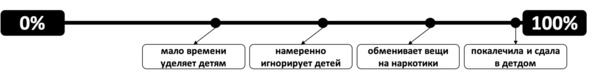 Определение 3: «Плохая мать – та, кто обменивает вещи детей на наркотики» (80%).