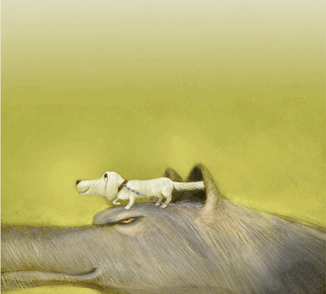 Эта вражда продолжается веками. Но в суровые времена ледникового периода волки постоянно подкармливались на помойках древнего человека, всё время приходили попытать счастья. И в какой-то момент среди волков возникли редкие мутанты. У этих животных во взрослом возрасте сохранялась полезная мышца в области глаз, и при встрече с человеком они успевали сделать «щенячьи глазки» – мило, правда? Человек реже прогонял таких волков, те получали больше еды и реже гибли от голода, лучше размножались – а значит, вокруг человека появлялось всё больше таких вот нестрашных волков. По сути, волки приручили человека, невольно заставив его выводить новую, более милую и мирную породу.