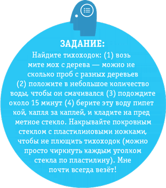 Есть такие замечательные организмы – тихоходки, или «водяные медведи». Они действительно немного похожи на медведей, только у них восемь «лап» и они меньше миллиметра в длину. Живут они обычно во мху, который можно найти на дереве или на каменном здании.