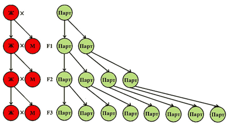 [Закрыть] Единственным отличием здесь будет то, что эти механизмы в данном случае будут осуществляться не в каждом поколении, а через одно.