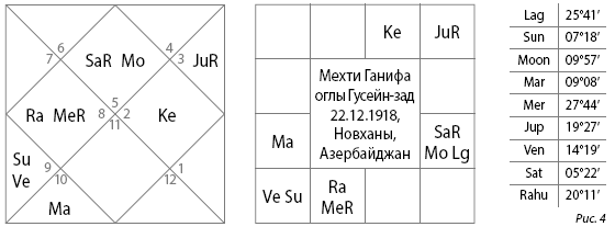 Мангала в Абхиджит проявляется также в карте очень известного человека, известного еще со времен Великой Отечественной войны – это еще один непобедимый слуга кармы Мехти Ганифа-оглы Гусейн-заде (Гусейнов).