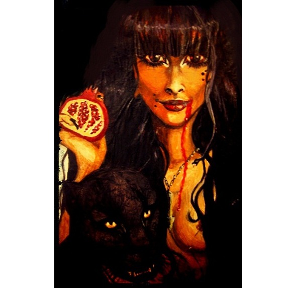Любительница экстрима и гранатовых зёрен оказалась в подземном плену. Нет, это была не сырая глубокая могила. А роскошно убранная дворцовая спальня без единого окна, куда кроткие слуги исправно приносили различные блюда от таинственного обожателя. Но соблазнилась чёрная хищница, которой присущ вампиризм, только похожими на кровавое сердце гранатами, которые дал ей хитрый красавец «Младший Лев». Он наблюдал за отвязными грабителями со стороны и началось опосредованное искушение дерзкой брюнетки (древнегреческая легенда трёхтелого змея Загрея, соблазнявшего пленную Персефону). А «Волчий Водолей» так увлёкся ценностями «Тельца», что попросту забыл о своей заворожённой напарнице. Он вовремя унёс лапы, полные добычи, не тронув красных плодов, поскольку любая пища в подземной преисподней была запретной и гарантировала лишение свободы.