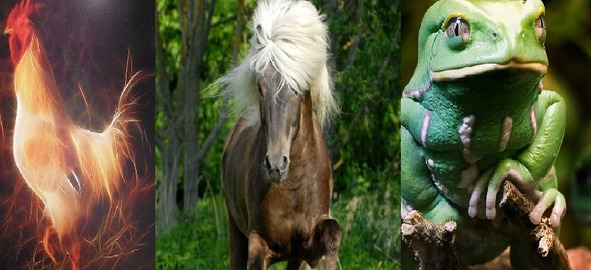 Зооморфными тотемами его являются всевозможные рептилии, жабы, лягушки, а также кони, ослы и петухи.