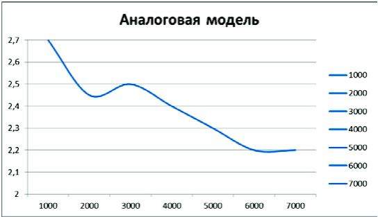 Рис. 15. Аналоговая модель (в виде кривой, построенной по взаимозависимым параметрам). Математическая модель для данного случая: C = PV(0,1)+ 2500)