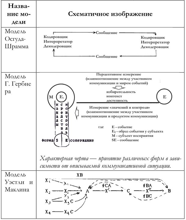Этими моделями легче манипулировать, чем, например, описательными (вербальными), т.к. в них легче что-то изменить, изучить вариант такого изменения. В них более высок уровень абстракции. К аналоговым относятся все модели теории коммуникации, показывающие варианты связей между коммуникатором и реципиентом.