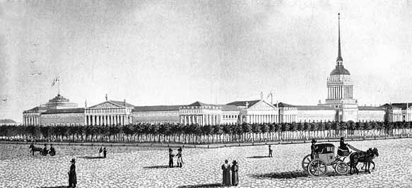 А вот Александр Павлович желал видеть рядом со своим дворцом не плац-парад и не стапели, а что-нибудь благородное, ласкающее взор. Военно-морской министр адмирал Павел Васильевич Чичагов с пониманием отнесся к желанию монарха и порекомендовал ему архитектора, способного придать Адмиралтейству облик величественный и одновременно изящный (в полном соответствии с эстетическими пристрастиями любимого внука Екатерины Великой).
