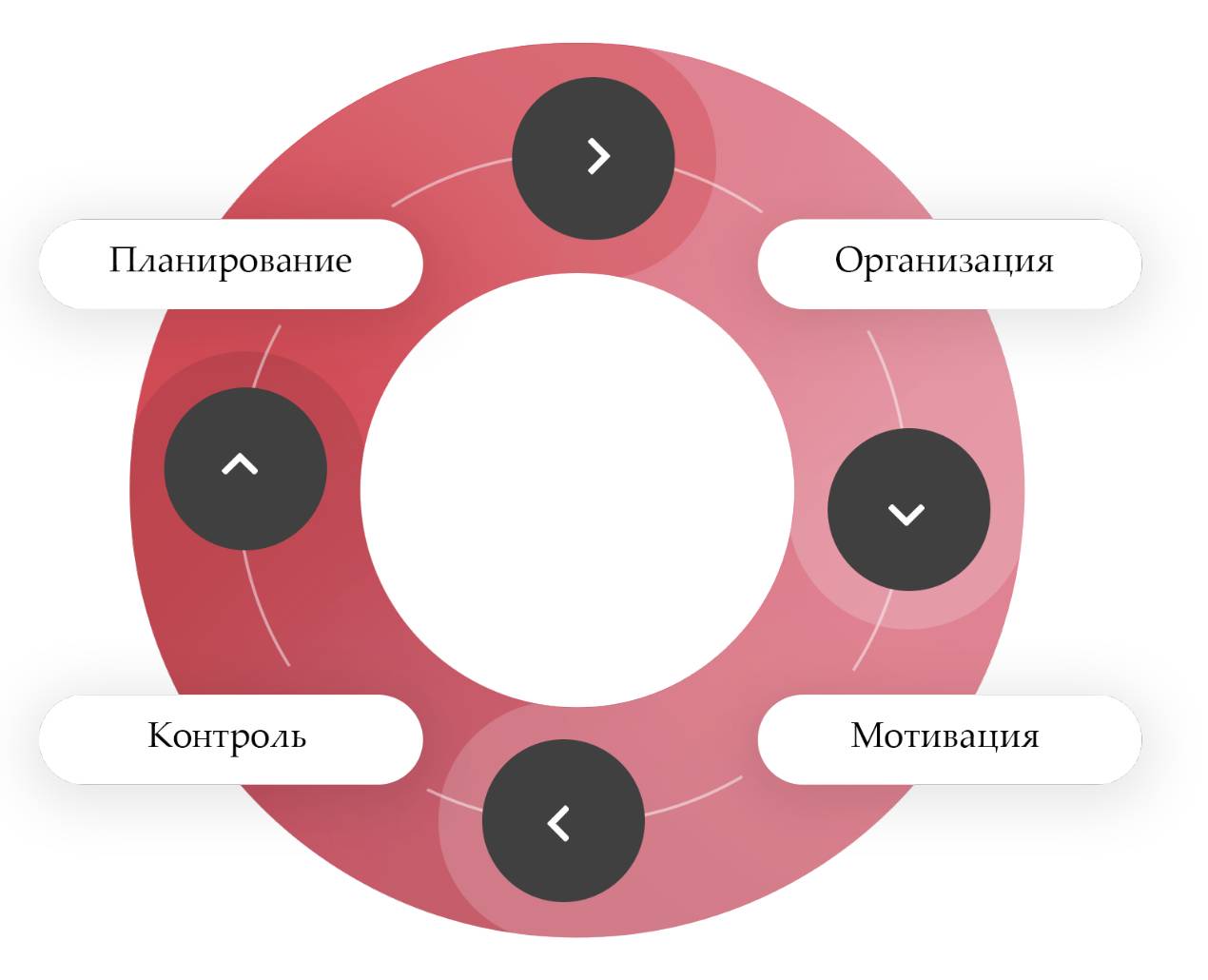 Цикл управления включает в себя 4 действия: Планирование – Организация – Мотивация – Контроль.