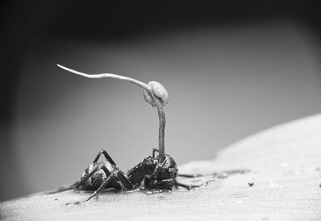 Очень интересен гриб Ophiocordyceps unilateralis (один из видов кордицепса), широко известный как гриб зомби-муравья. Его открыл натуралист Альфред Уоллес в 1859 году, и до сих пор этот гриб будоражит умы ученых. Обитает этот грибок в тропических лесах. Долгое время ученые поражались способности этого гриба не только аккуратно пожирать свою жертву изнутри, но и менять поведение, то есть играть роль кукловода и дергать свою жертву за ниточки.